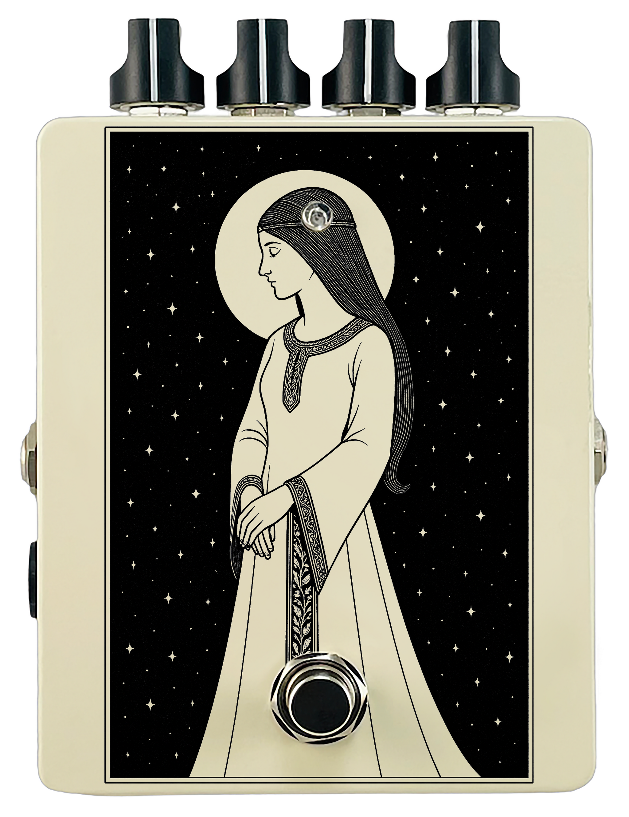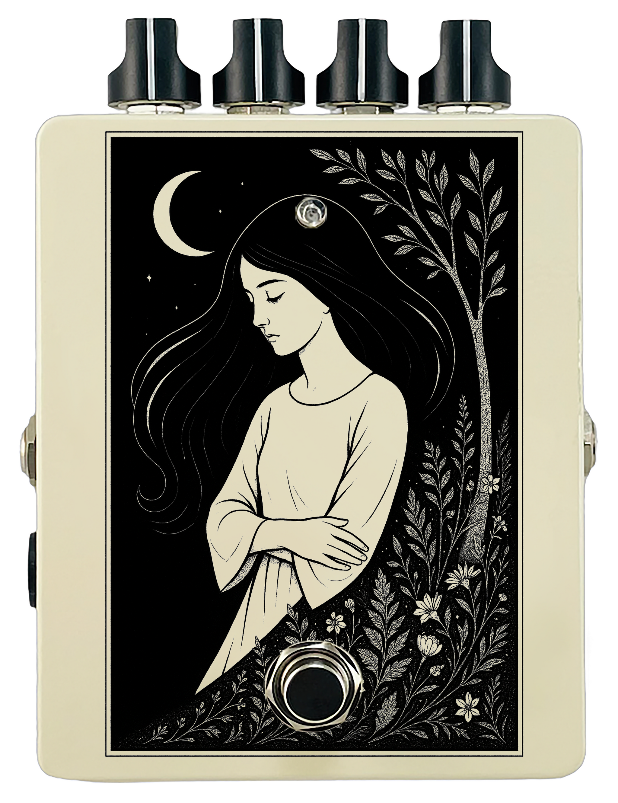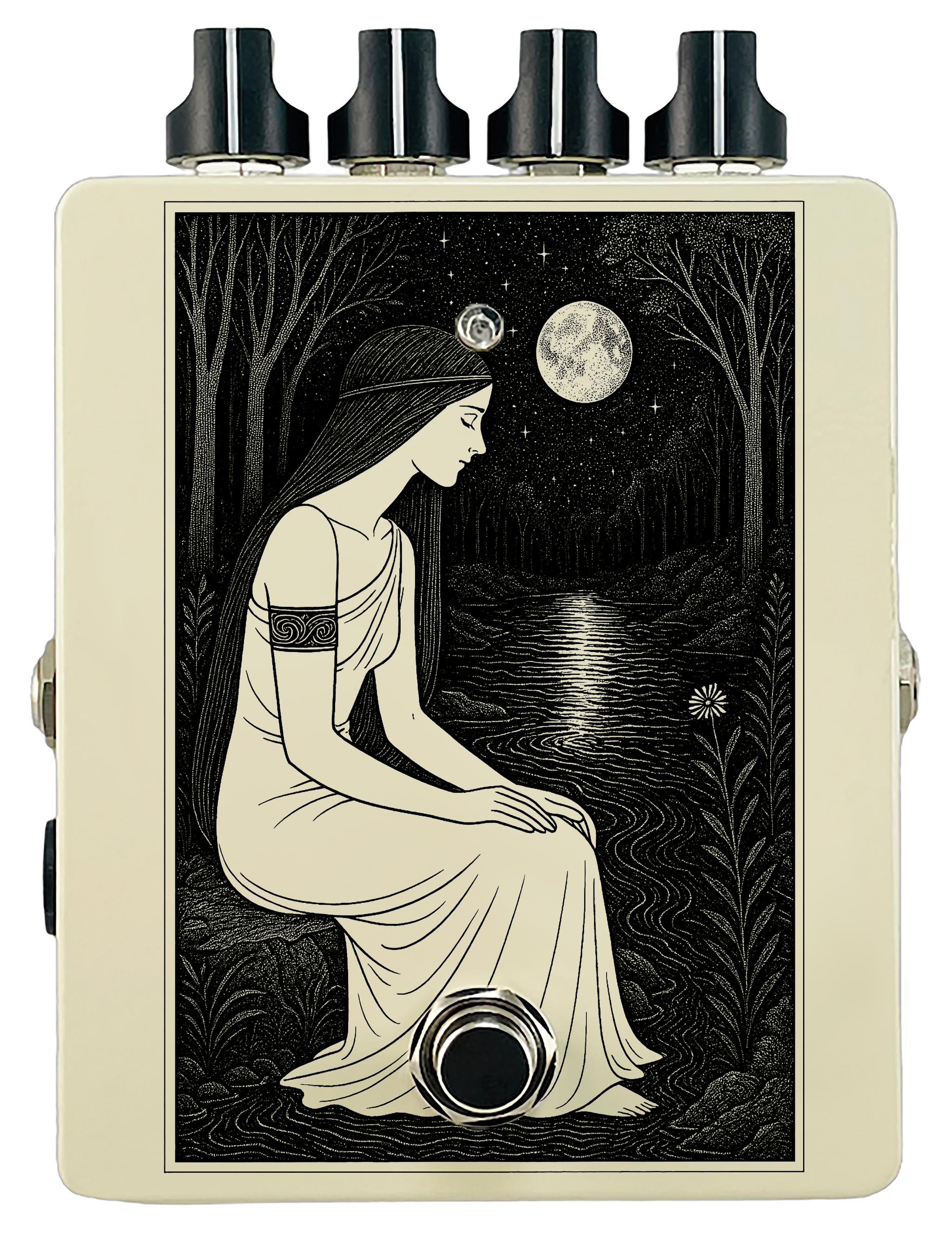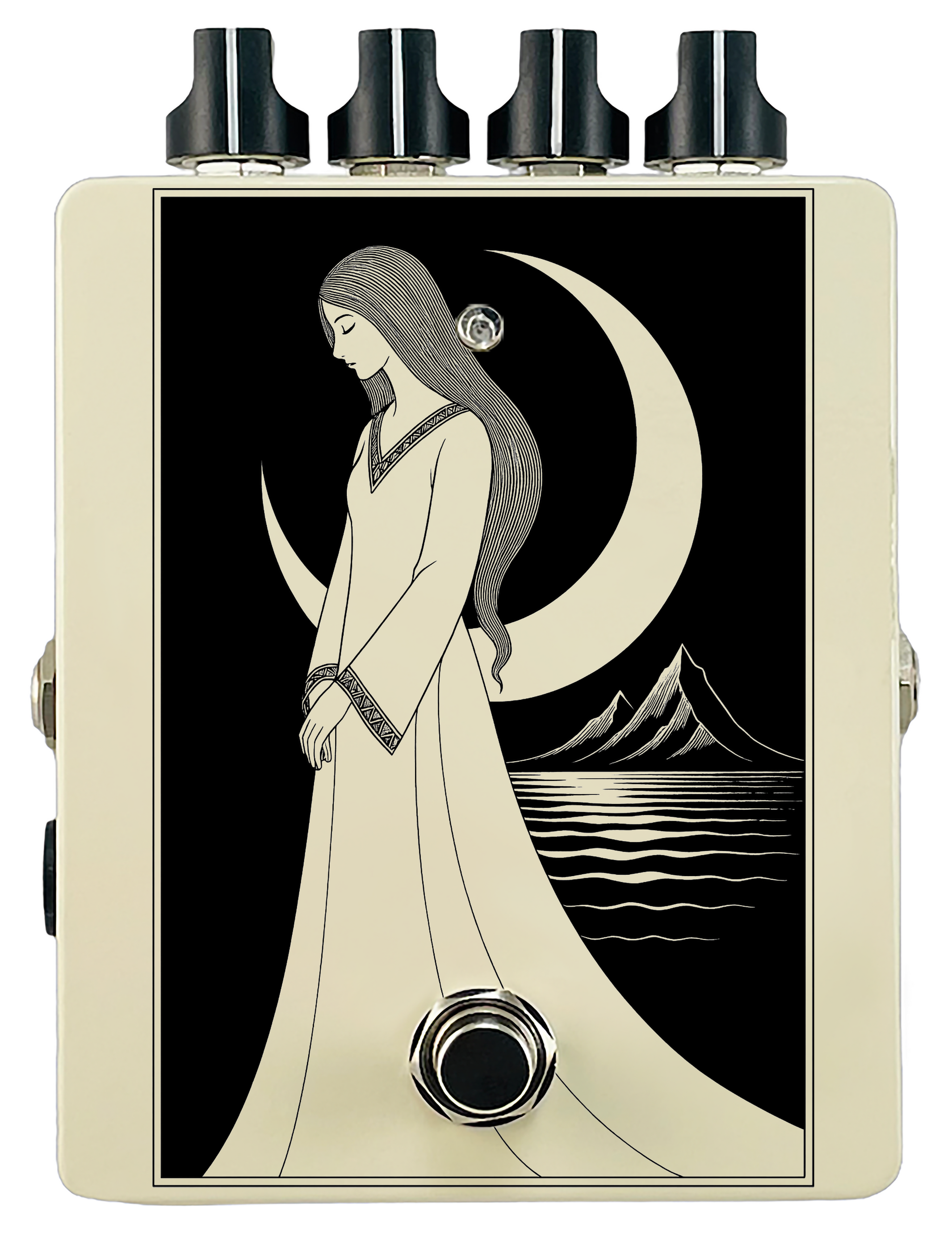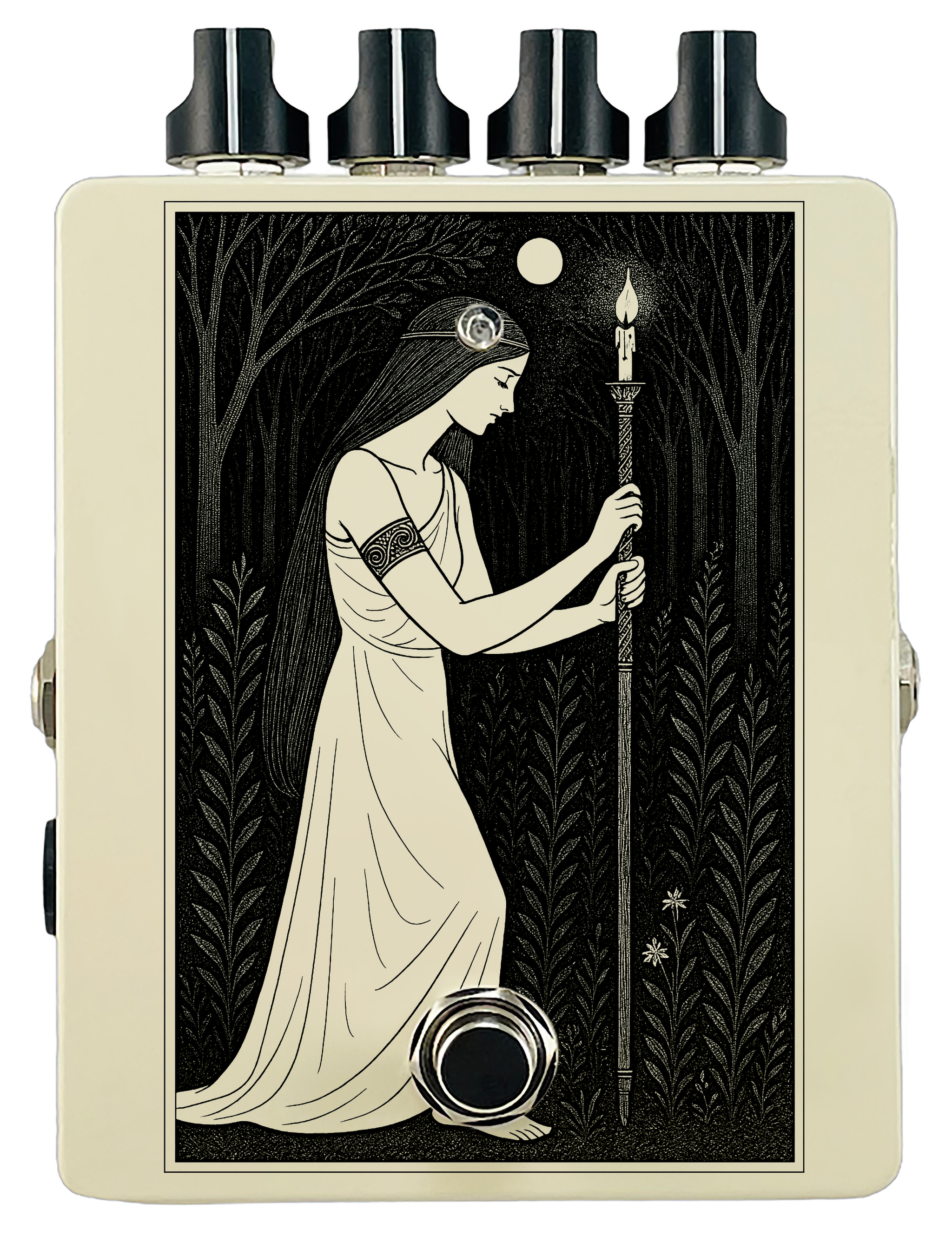 Each pedal features a unique one off piece of art drawing from the line art styles of the great Art Nouveau line artists.